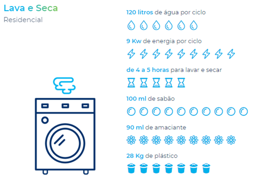 A duração da lavagem é reduzida pela metade. Em média, aproximadamente 1,15 horas para lavar e secar as peças. Uma máquina doméstica comum leva mais que o triplo. Sem necessidade de deslocamento, sobra mais tempo para focar no que realmente importa.